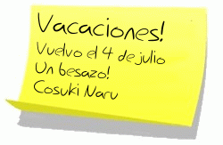 anda y anda.. dando envidia al personal!!! yo hasta agosto nada de nada… pero bueno… Que lo disfrutes y que lo pases estupendamente, te echaremos de menos!! pero que sepas que en agosto tb voy yo para allá!! ya me contarás.bss