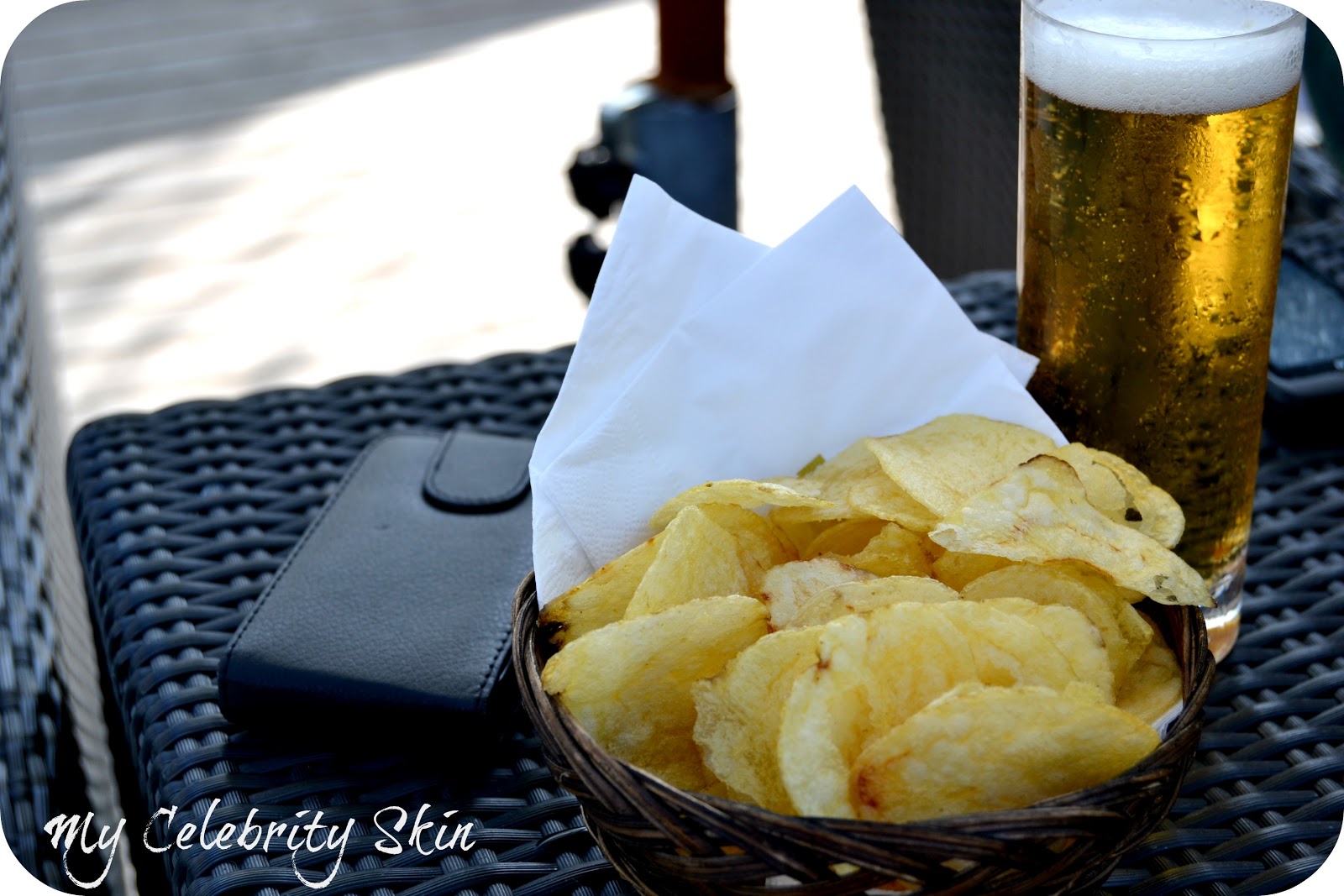 | Una cervecita y patatas fritas de aperitivo antes de comer y el móvil para contaros todo en Twitter y en Instagram |