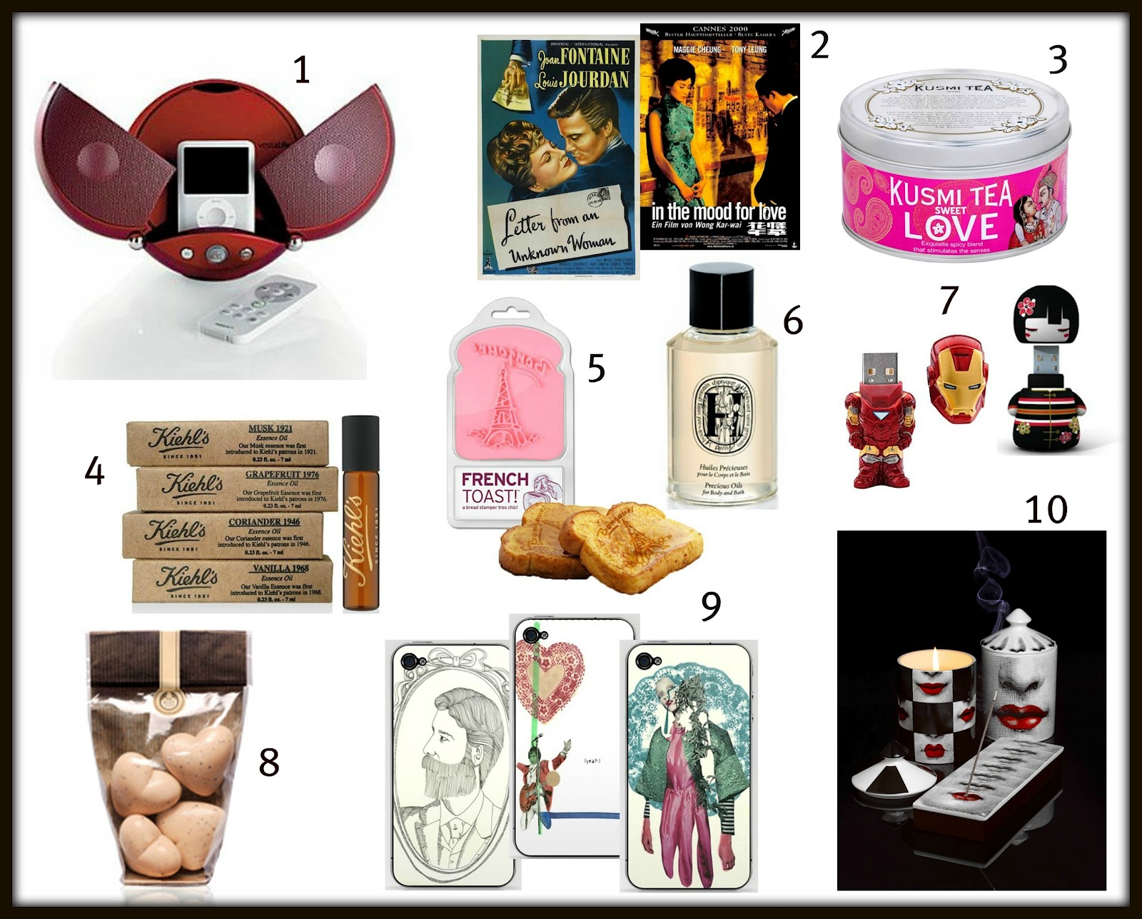 Qué ideas más chulísimas. Yo no celebro San Valentín. Pero TODO lo que sugieres me parece genial para compartir en cualquier momento con nuestra pareja. Me han dejado perdidamente enamorada esas carcasas para Iphone. Y esos USB de Iron Man y la muñeca rollito kokeshi… <3<3<3