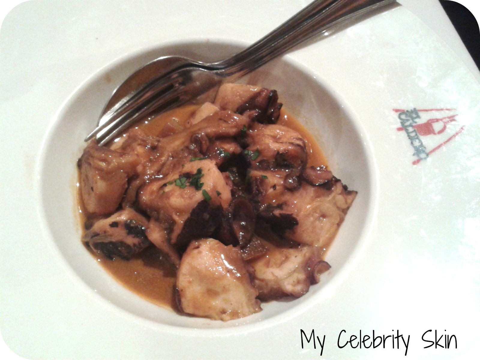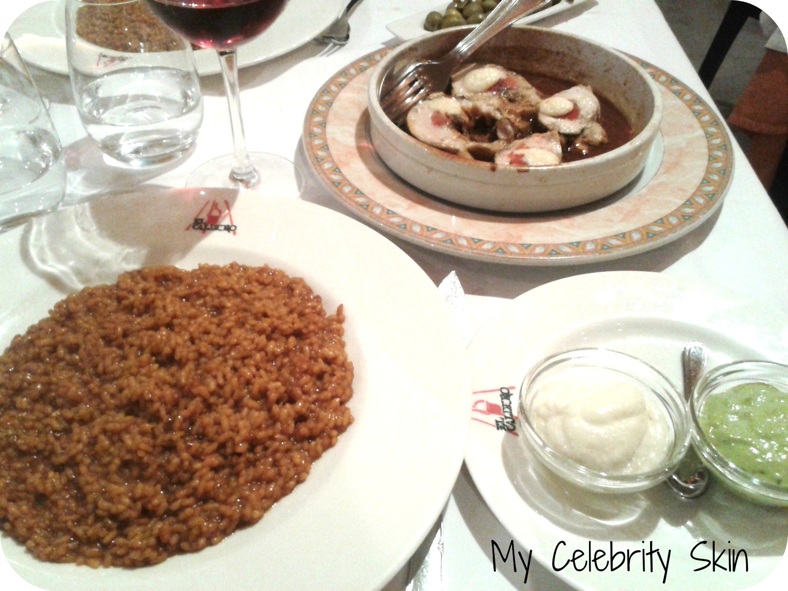 Nosotros elegimos un vino joven rosado de Navarra y comenzamos a catarlo con los aperitivos deliciosos que nos pusieron, la sobrasada es espectacular. Decidimos compartir un plato de pulpo a la murciana que se hace guisado y está tierno y delicioso con una salsa buenísima. Por supuesto como plato principal no podíamos dejar de pedir su famoso arroz caldero. El arroz caldero es un arroz meloso elaborado en un caldero como su nombre indica y a la antigua usanza. Es un plato absolutamente delicioso que se sirve con el pescado aparte y ali oli de dos tipos, una verdadera delicia.